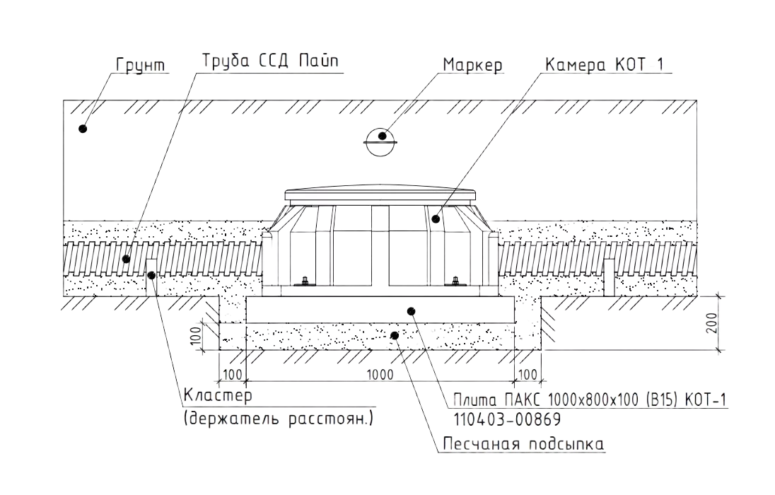 При необходимости защиты камеры от кратковременной транспортной нагрузки, внутрь нее устанавливается отрезок 110 ПЭ трубы, которая увеличивает прочность крышки. Также возможно ее наполнение гладким щебнем или песком.