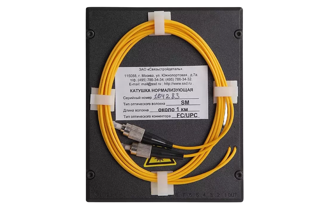 Компактная нормализующая (компенсационная) катушка предназначена для нормализации модового состава излучения вводимого в измеряемую линию и для устранения влияния на результаты измерений ближней мертвой зоны оптического рефлектометра.