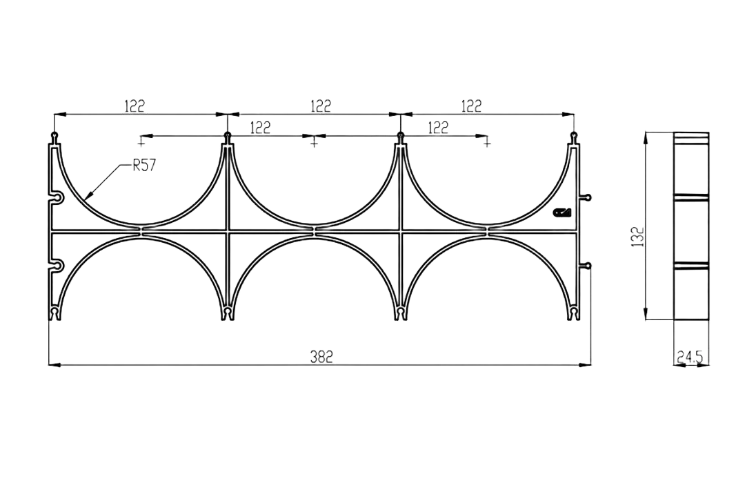 Кластер представляет собой решетчатое изделие с ложементами для укладки труб, выполненное из пластика. На корпусе кластера имеются специальные выступы и пазы для соединения нескольких кластеров в единый блок при прокладке большего количества каналов.