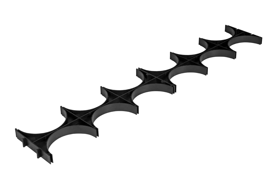 Использование кластеров при одновременной прокладке нескольких труб в одной траншее обеспечивает выдерживание равного заданного расстояния между трубами, препятствуя их смещению при засыпке песком, исключает возможность заломов плети трубопроводов, тем самым предупреждая проблемы с протяжкой кабеля.