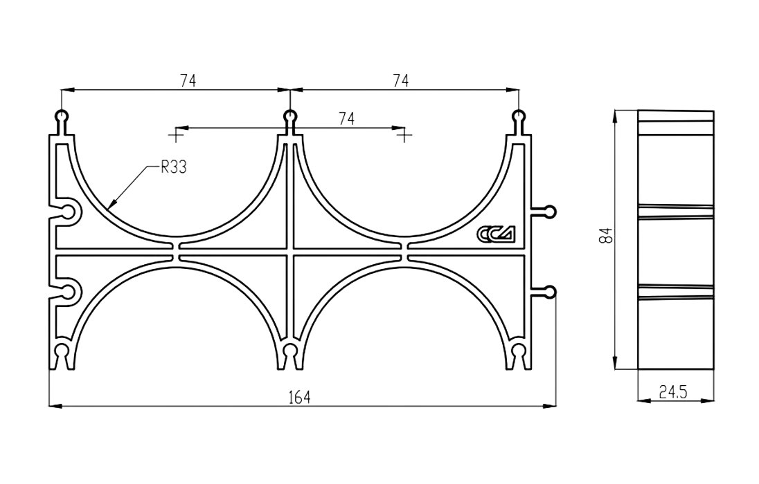 Кластер представляет собой решетчатое изделие с ложементами для укладки труб, выполненное из пластика. На корпусе кластера имеются специальные выступы и пазы для соединения нескольких кластеров в единый блок при прокладке большего количества каналов.