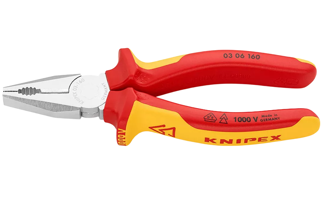 KN-0306160 Плоскогубцы комбинированные VDE, 160 мм, хром, 2-комп диэлектрические ручки