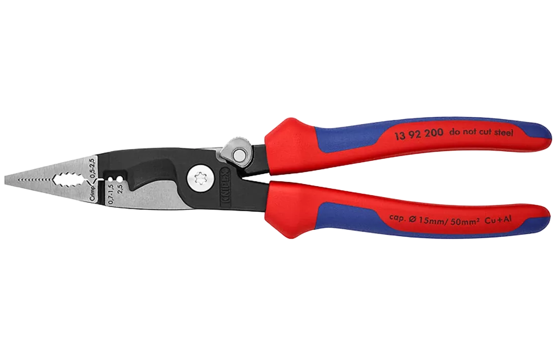 KN-1392200 Клещи электромонтажные, 6-в-1, 200 мм, защёлка-"собачка", фосфатированные, 2-комп ручки
