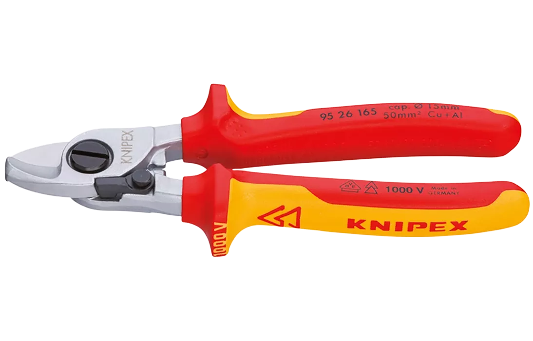 KN-9526165 Кабелерез VDE, Ø 15 мм (50 мм²), длина 165 мм, пружина, хром, 2-комп диэлектрические ручки