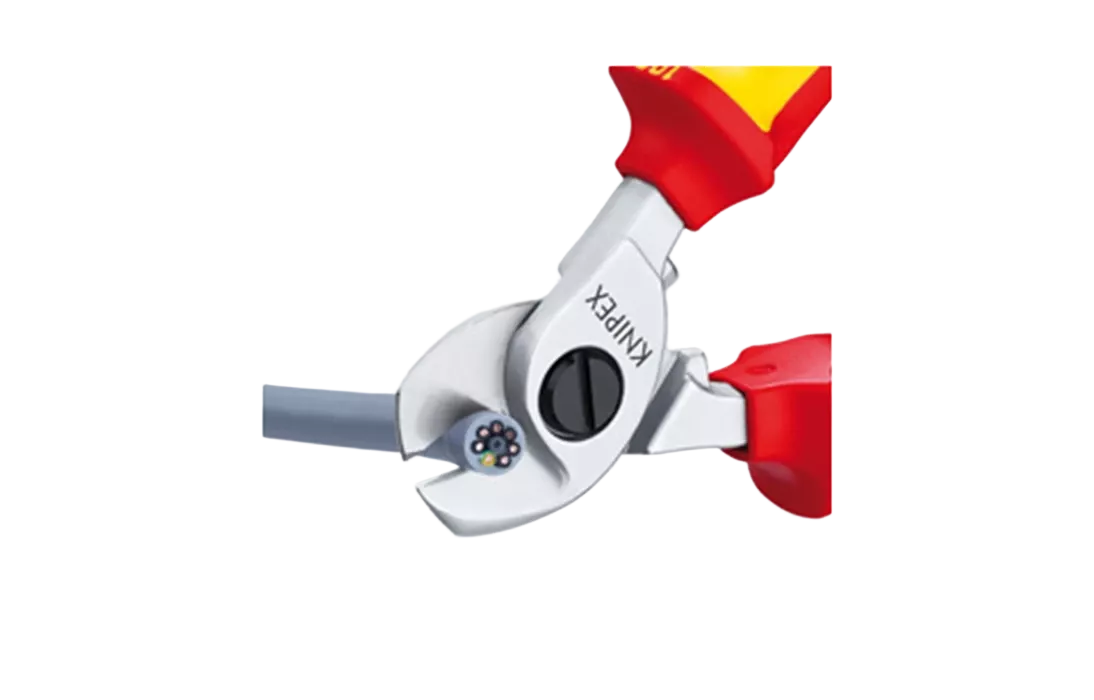 95 26 165 Кабелерез для реза медного и алюминиевого кабеля, одно- и многожильного. Режут гладко и чисто, без деформации материала. Не подходит для стальной проволоки и твёрдотянутых медных проводников. Закаленные режущие кромки с прецизионной шлифовкой. Легко резать одной рукой. С защитой для рук. Регулируемый шарнир, винтовой, самофиксирующийся. Внутренняя пружина, защищенная от загрязнения или ее утери.