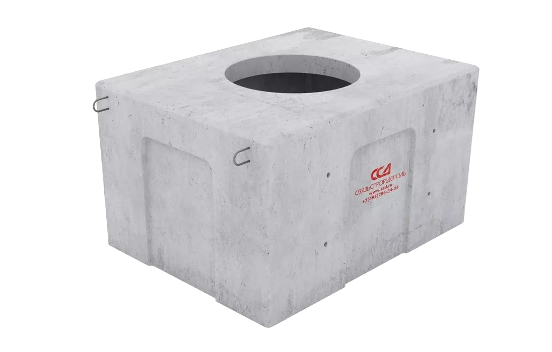 Колодец кабельной связи изготавливается из тяжёлого бетона по ГОСТ 26633. Характеристики бетона: класс бетона-В25; морозостойкость-F200; водонепроницаемость-W8.