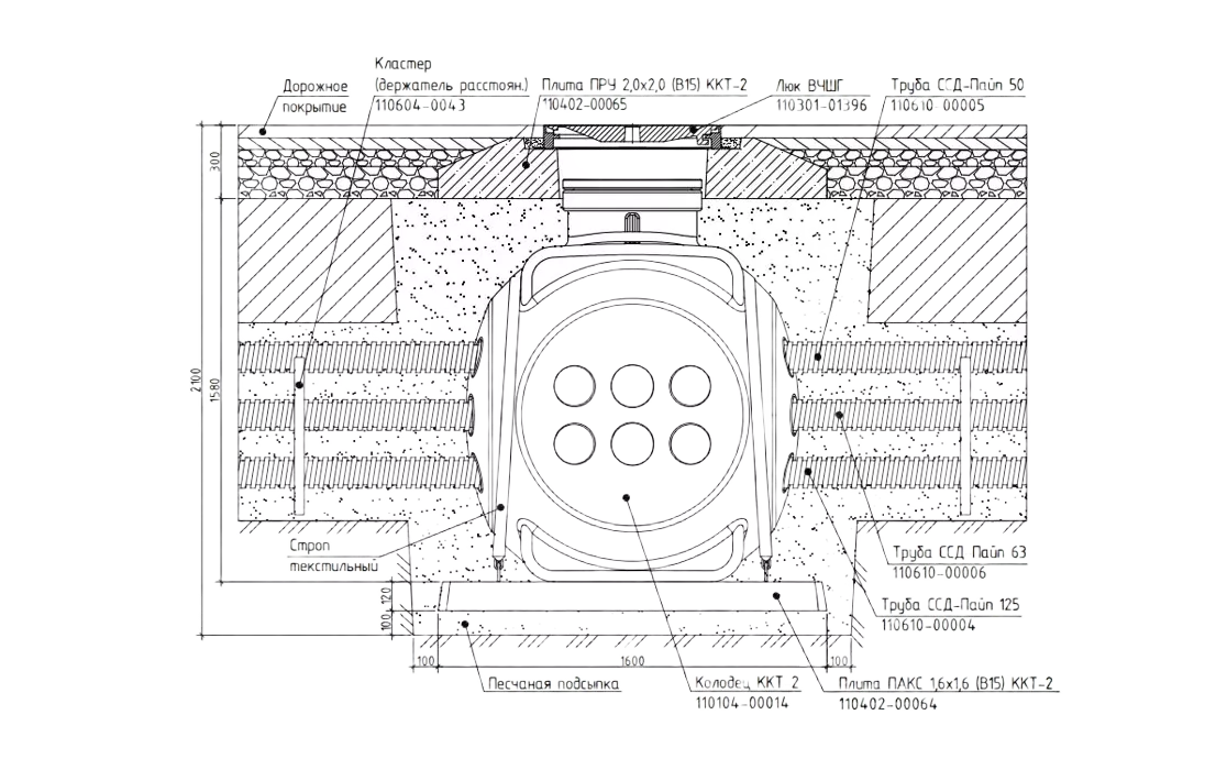 Предназначен для строительства электрических и телекоммуникационных кабельных сетей в качестве смотрового устройства кабельной канализации, с возможностью обеспечения вывода горловины на поверхность, а также в качестве подземных контейнеров с целью размещения пассивного оборудования.
