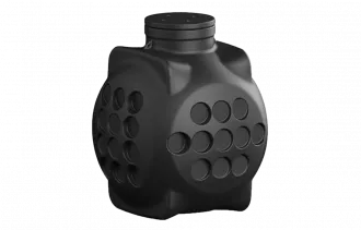 Представляет собой цельнолитое изделие шарообразной формы, без сварных швов, обеспечивающих его герметичность. Корпус колодца имеет ребра жесткости для придания ему повышенной прочности. С четырех сторон, на стенках колодца имеются специально сформированные контуры для ввода гладкостенных, гофрированных или спиральных труб. Каждая стенка содержит по 6-ть таких контуров диаметром 170 мм.