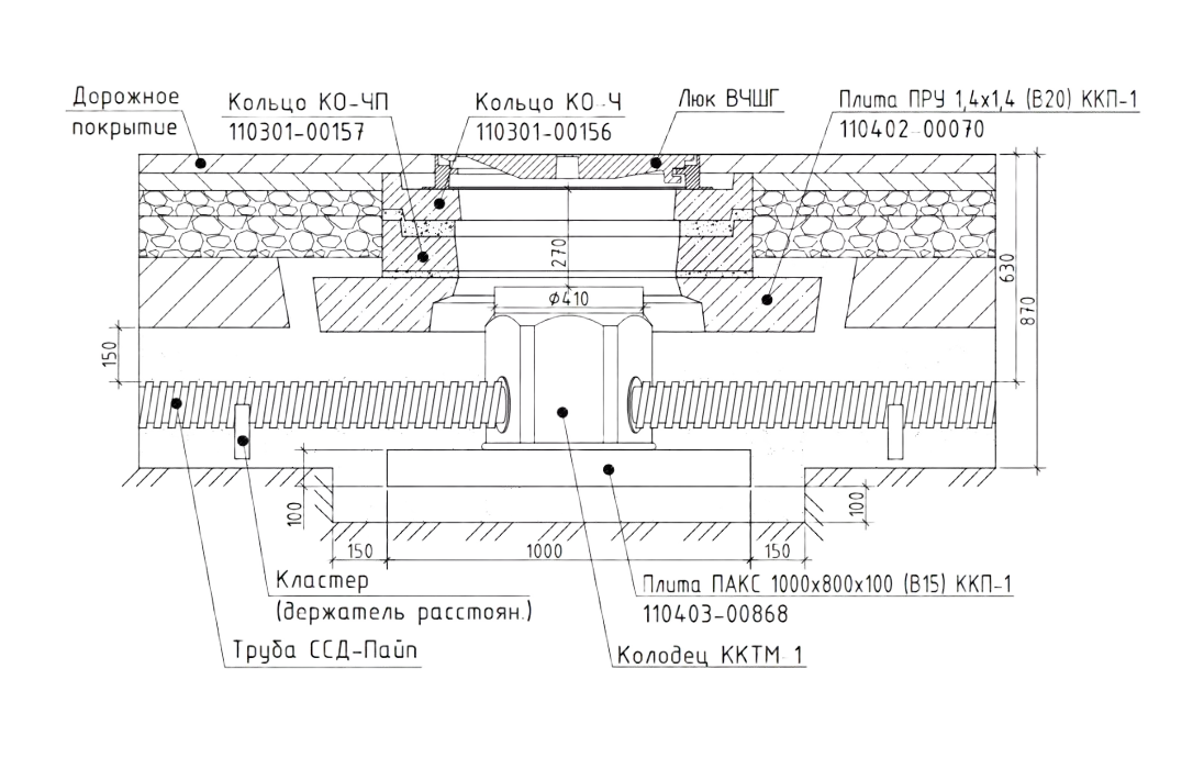 Предназначен для использования в качестве смотрового устройства с возможностью вывода люка на поверхность, а также в качестве герметичного подземного контейнера, предназначенного для распределения кабеля и размещения малогабаритного оборудования.