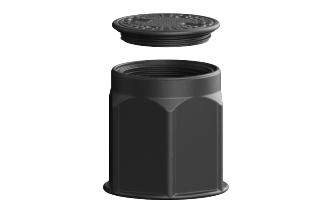 Состоит из цельнолитого корпуса и крышки с резьбовым соединением. Герметичность соединения крышки с корпусом обеспечивается резиновым уплотнительным кольцом, расположенным в корпусе горловины колодца. На верхней поверхности крышки имеются специальные отверстия, в которые вставляется ключ, который приобретается дополнительно. Это позволяет закрутить крышку с усилием. Последующее открытие крышки возможно только с применением ключа.