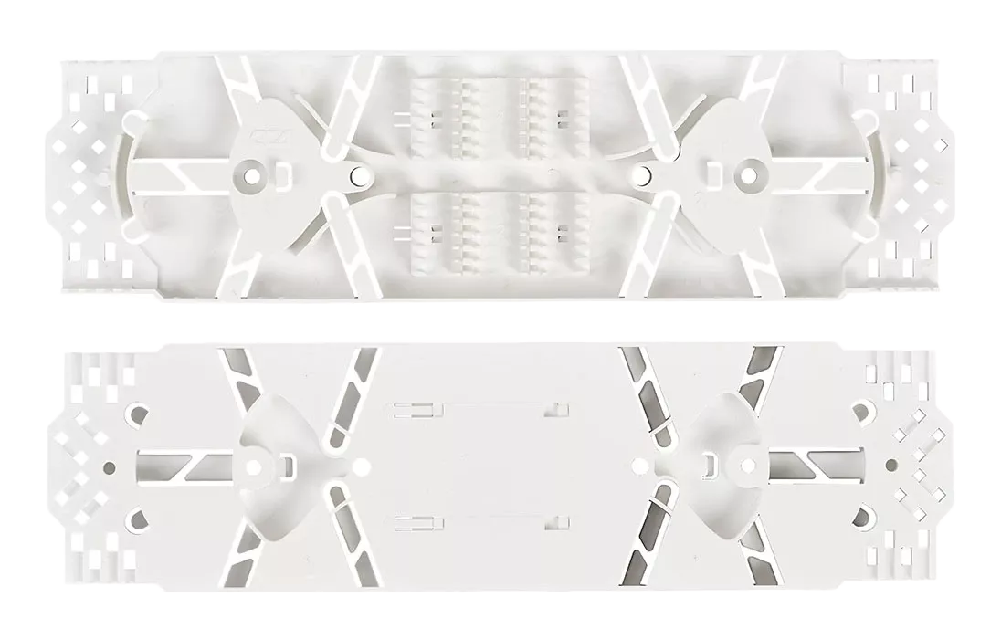 Конструкция кассеты позволяет заводить модули с ОВ с любого из четырёх углов и осуществлять изменение направления укладки запаса волокон.