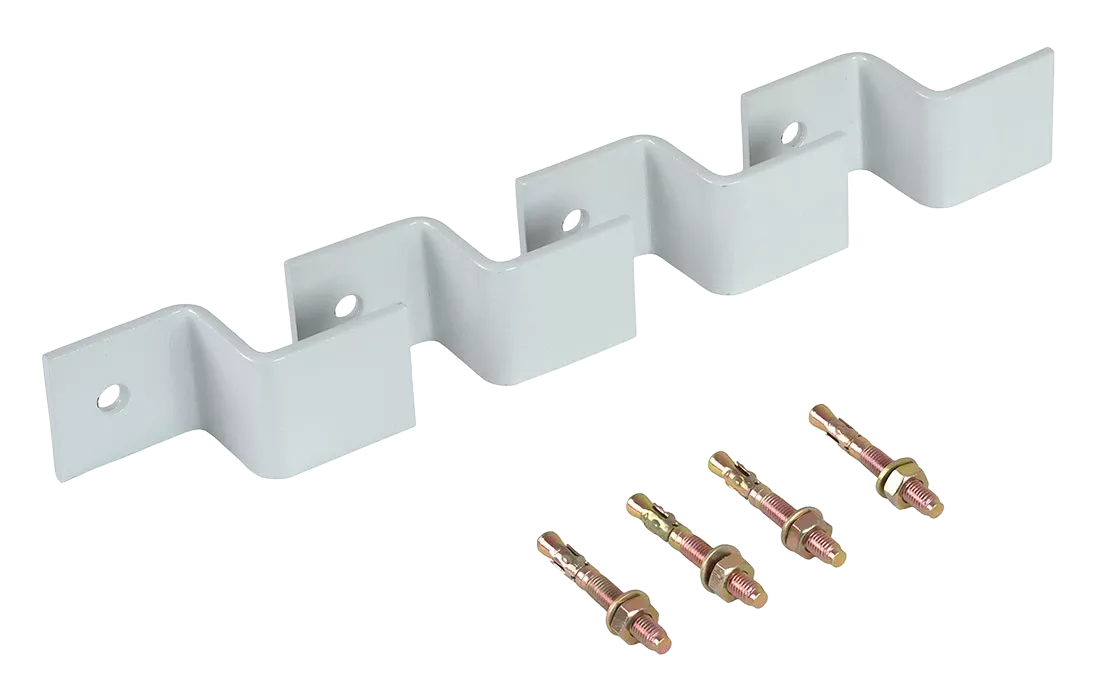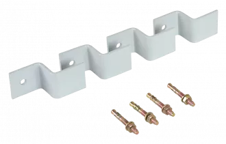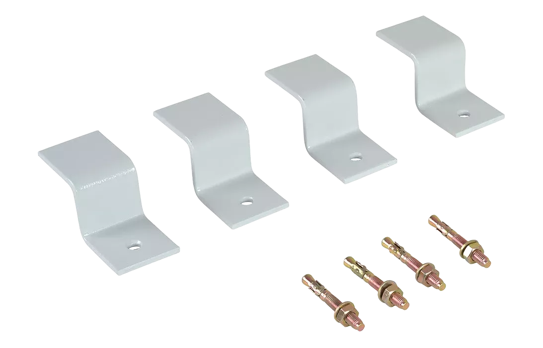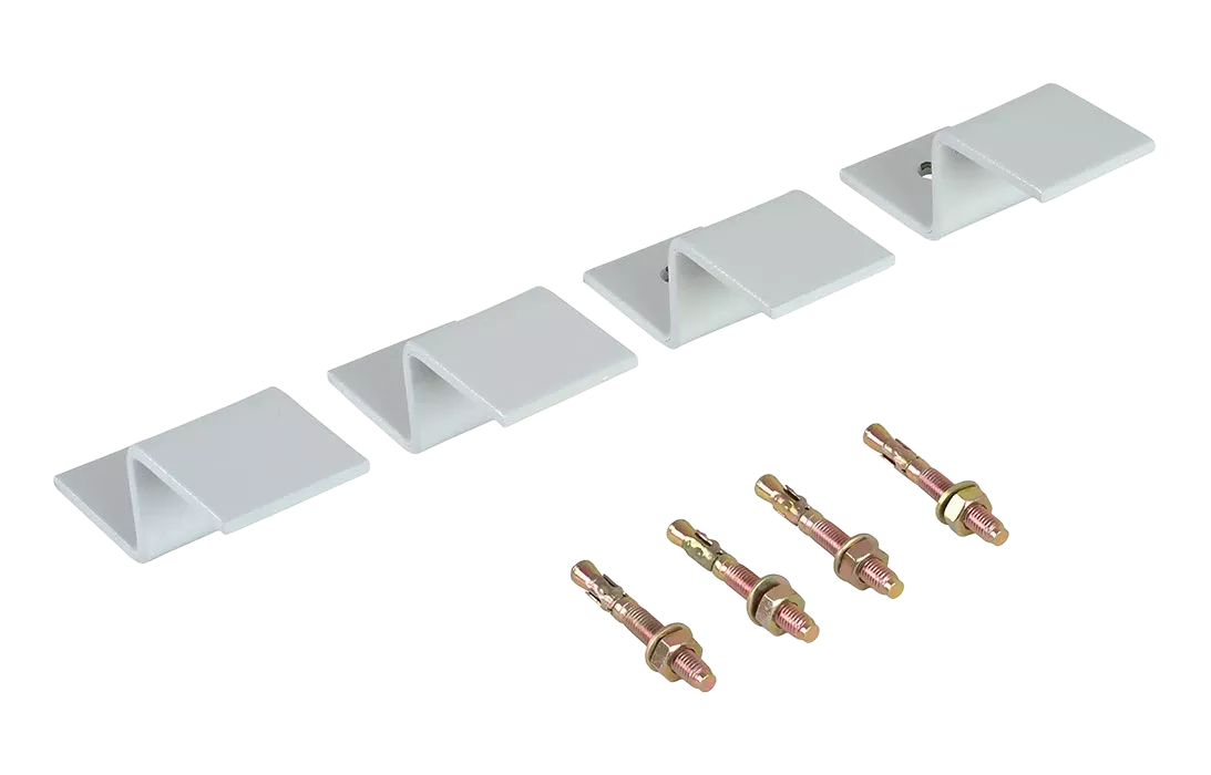 Комплект состоит из 4 металлических скоб с отверстиями, специальным образом изогнутых по форме дна камеры, и 4 клиновых анкеров для фиксации КОТ-1 к основанию. Скобы покрыты порошковой краской.