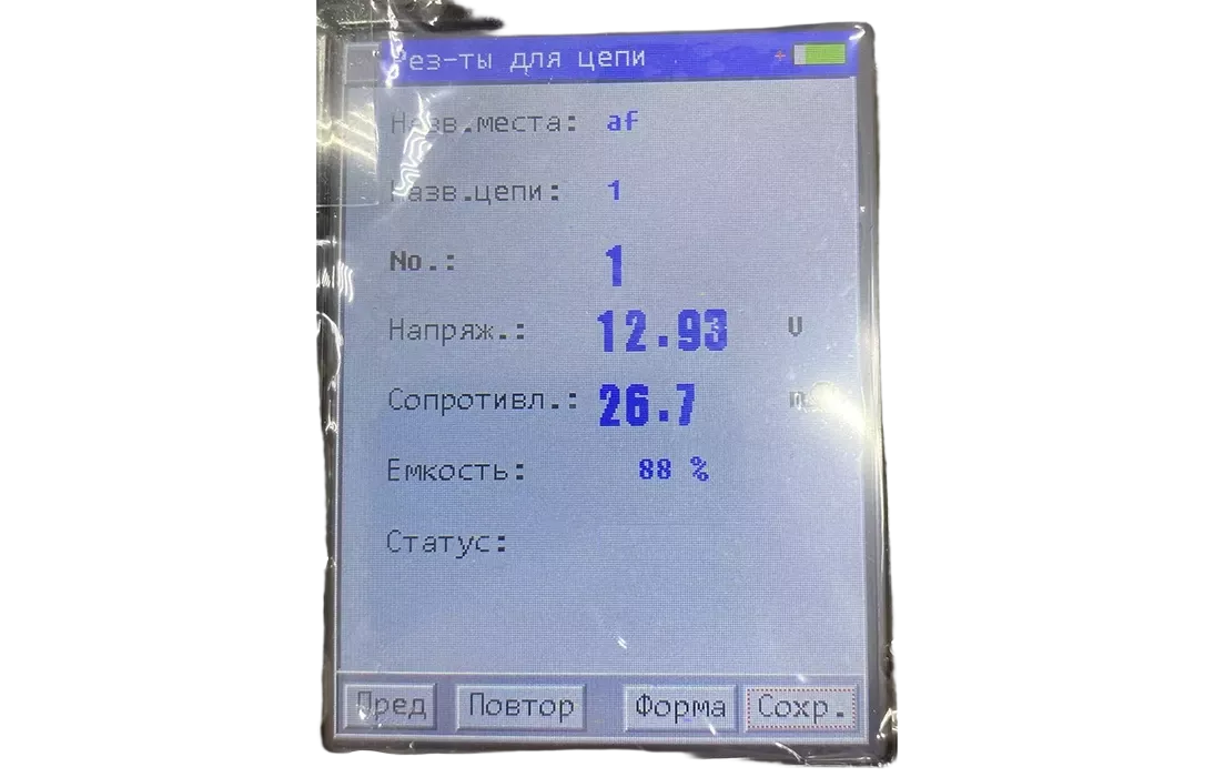 - Одновременное измерение напряжения, сопротивления и ёмкости батарей