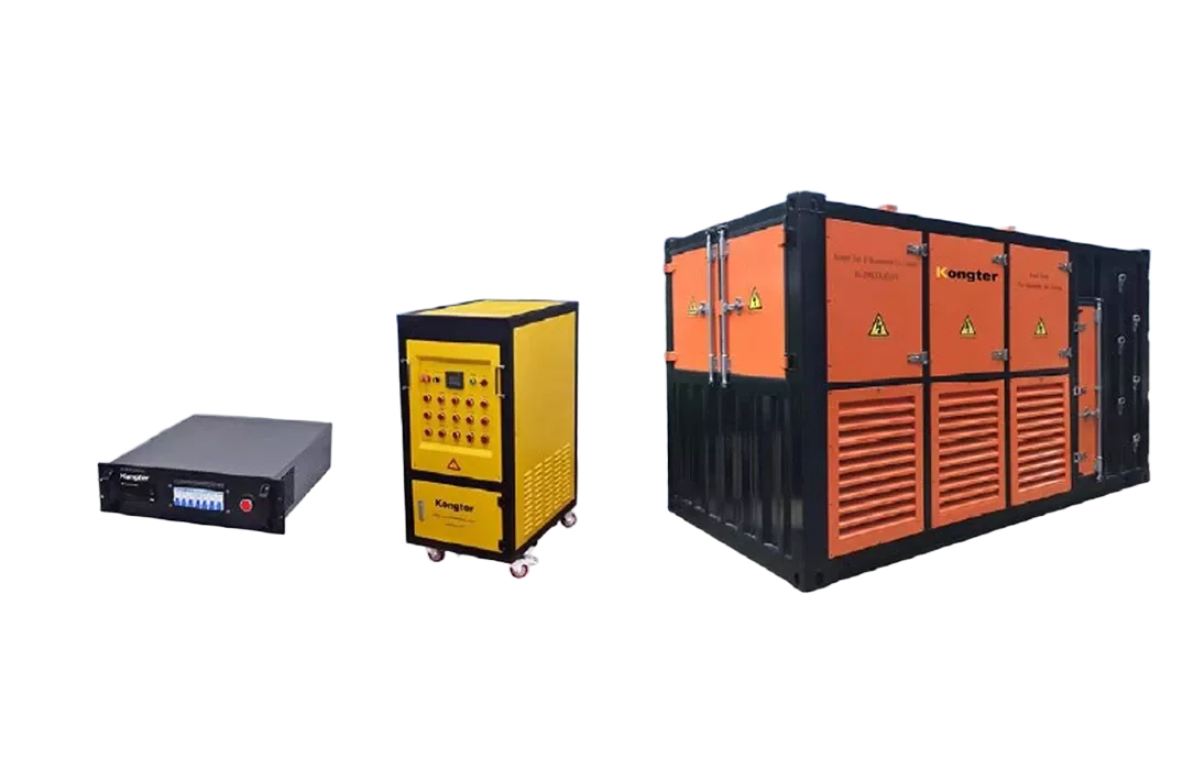 Компания Kongter предлагает целую линейку батарей нагрузки переменного тока, включая только резистивные и комбинированные резистивно-реактивные устройства размером от небольших, устанавливаемых в стойку, моделей до огромных устройств контейнерного типа. Наиболее распространены следующие типы: