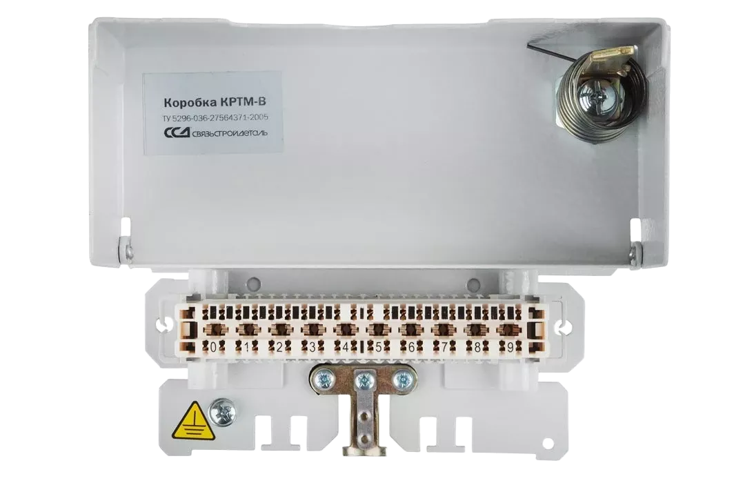 Ввод кабелей осуществляется через вырез в крышке, что упрощает монтаж и позволяет использовать для абонентской разводки не только провода ТРП/ТРВ, но и четырехпарные кабели типа UTP/FTP. Конструкция узла крепления кабелей в коробках обеспечивает надежный электрический контакт с экраном входящего распределительного кабеля, что облегчает его заземление.