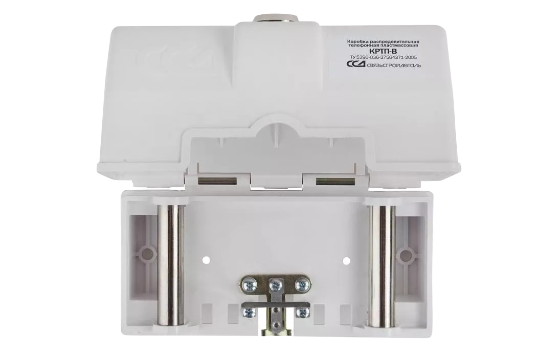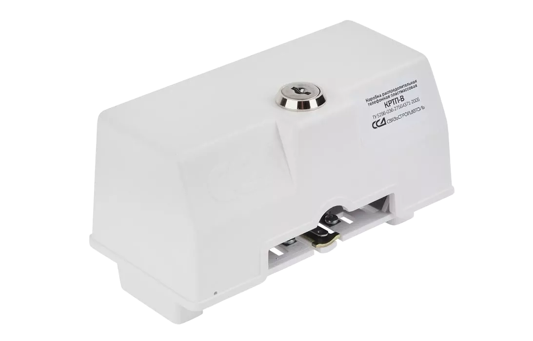Корпус коробки КРТП-В изготовлен из ударопрочного негорючего пластика. Соответствие коробки требованиям пожарной безопасности, установленных ГОСТ 12176, подтверждено сертификатом №ССПБ.RО.OП047.00075.