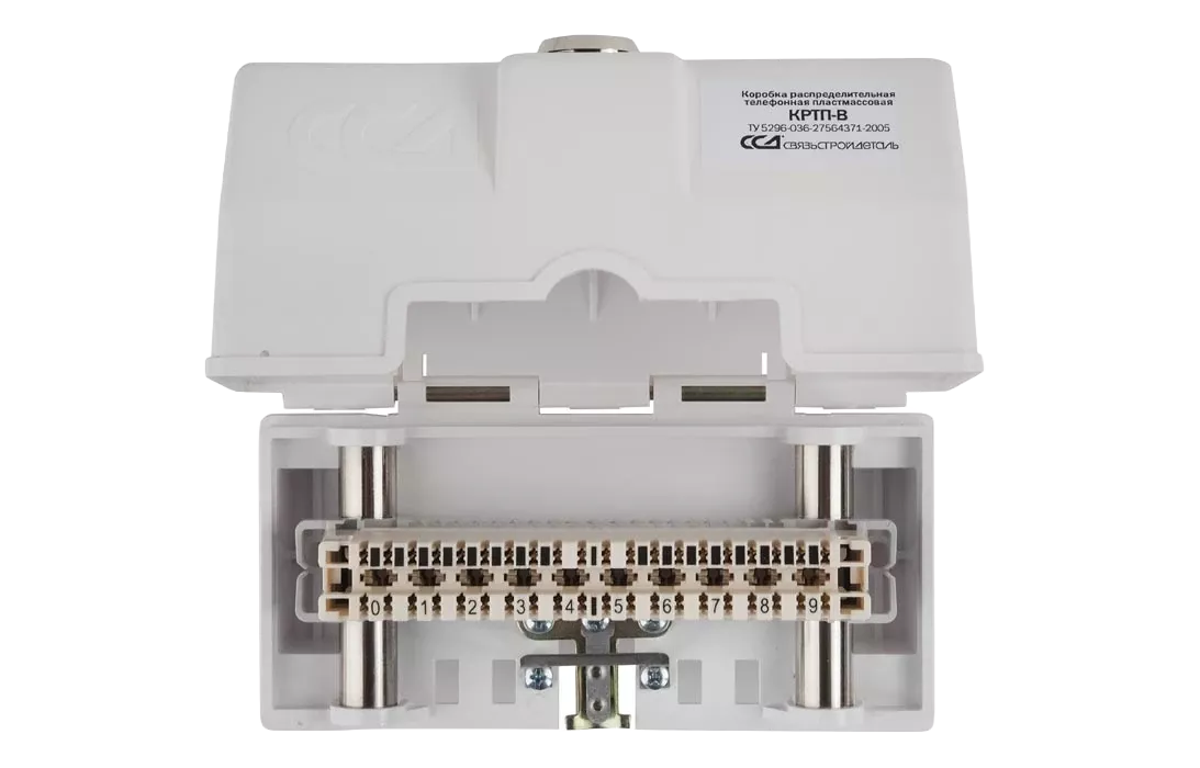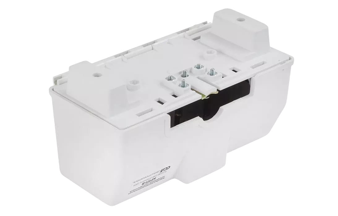 Корпус коробки КРТП-В изготовлен из ударопрочного негорючего пластика. Соответствие коробки требованиям пожарной безопасности, установленных ГОСТ 12176, подтверждено сертификатом №ССПБ.RО.OП047.00075.