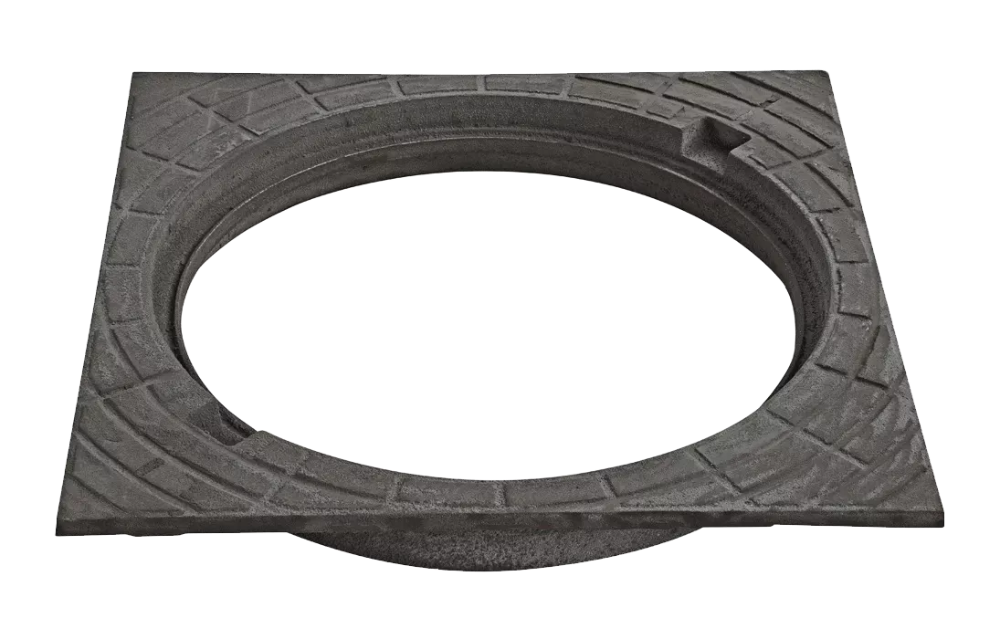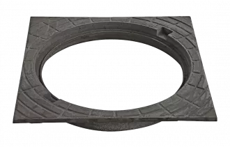 Чугунный корпус (обечайка) квадратного люка с номинальной нагрузкой в 15 тонн предназначена под комплектацию крышкой с двумя ушками.