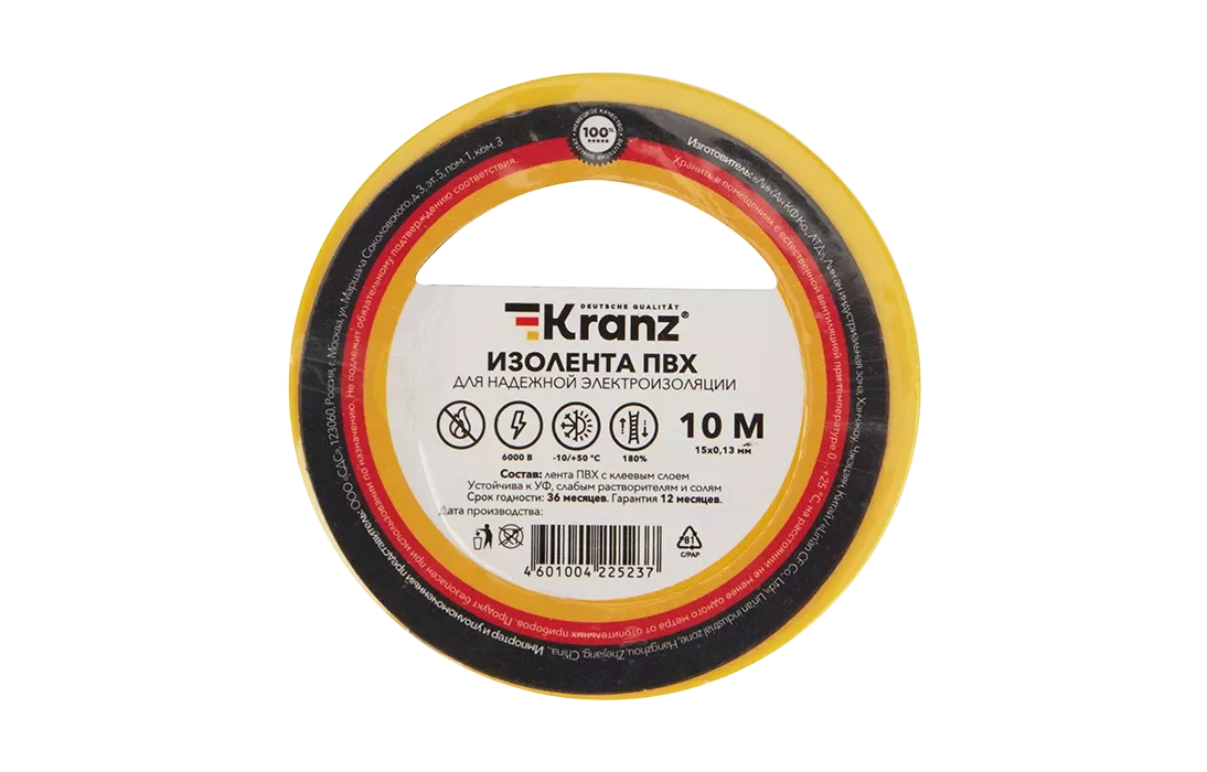 Изолента KRANZ предназначена для электрической изоляции, цветной маркировки, соединения, защиты от внешних факторов и герметизации кабелей, проводов и шнуров.