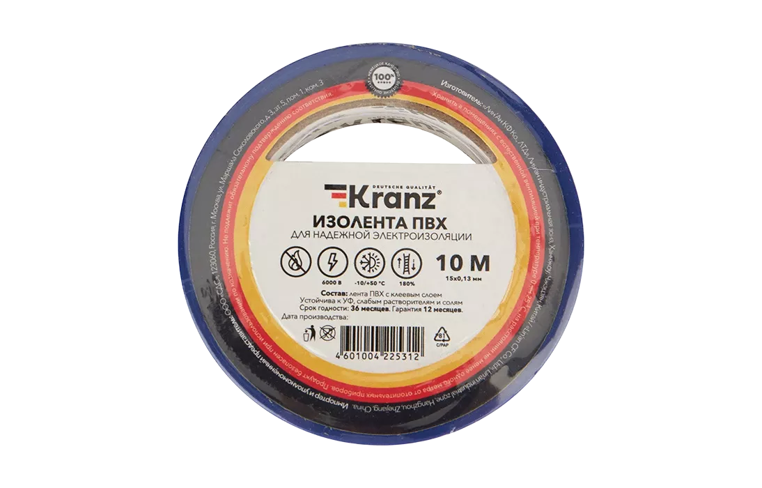 Изолента KRANZ предназначена для электрической изоляции, цветной маркировки, соединения, защиты от внешних факторов и герметизации кабелей, проводов и шнуров.