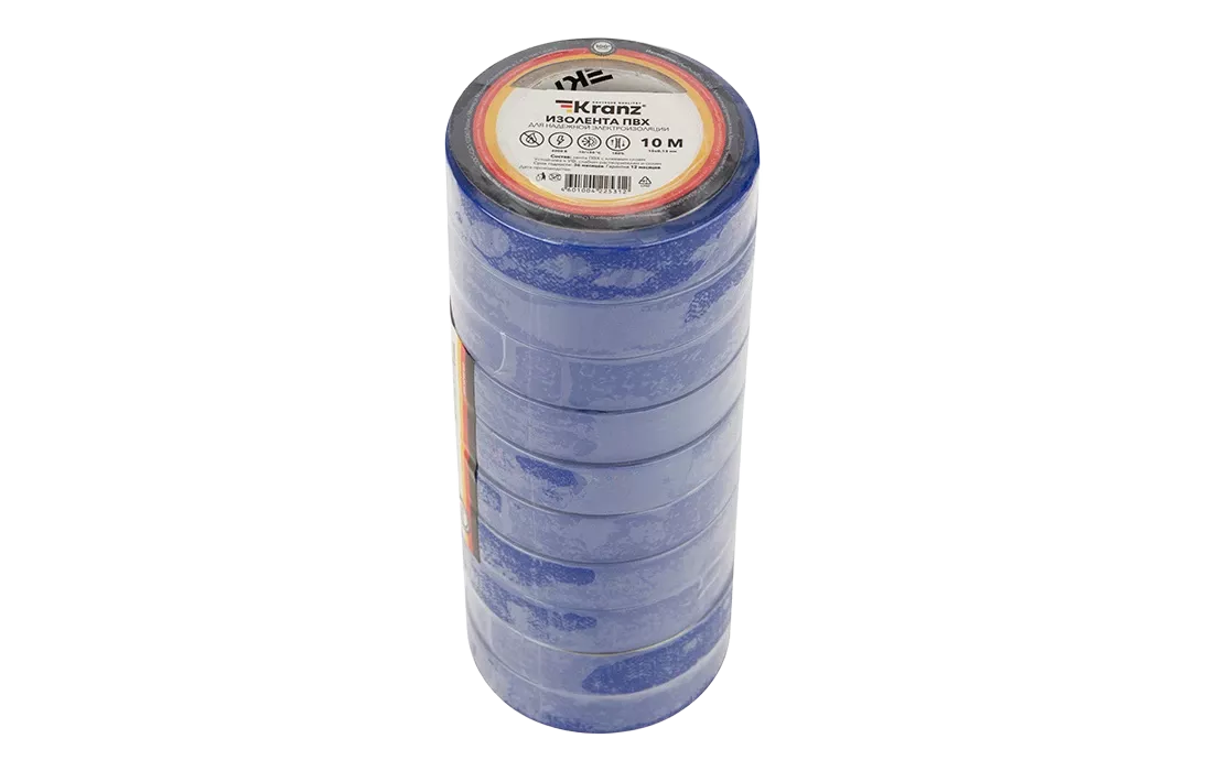 KR-09-2005 Изолента ПВХ KRANZ 15 мм х 10 м, синяя, упаковка 10 роликов