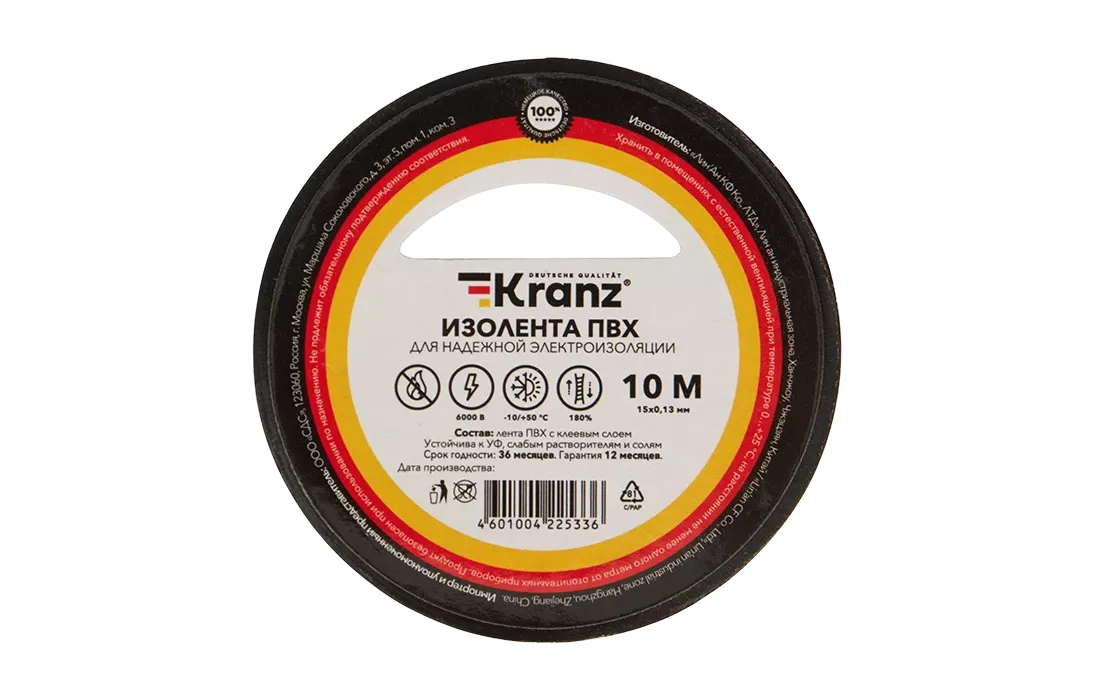 Изолента KRANZ предназначена для электрической изоляции, цветной маркировки, соединения, защиты от внешних факторов и герметизации кабелей, проводов и шнуров.