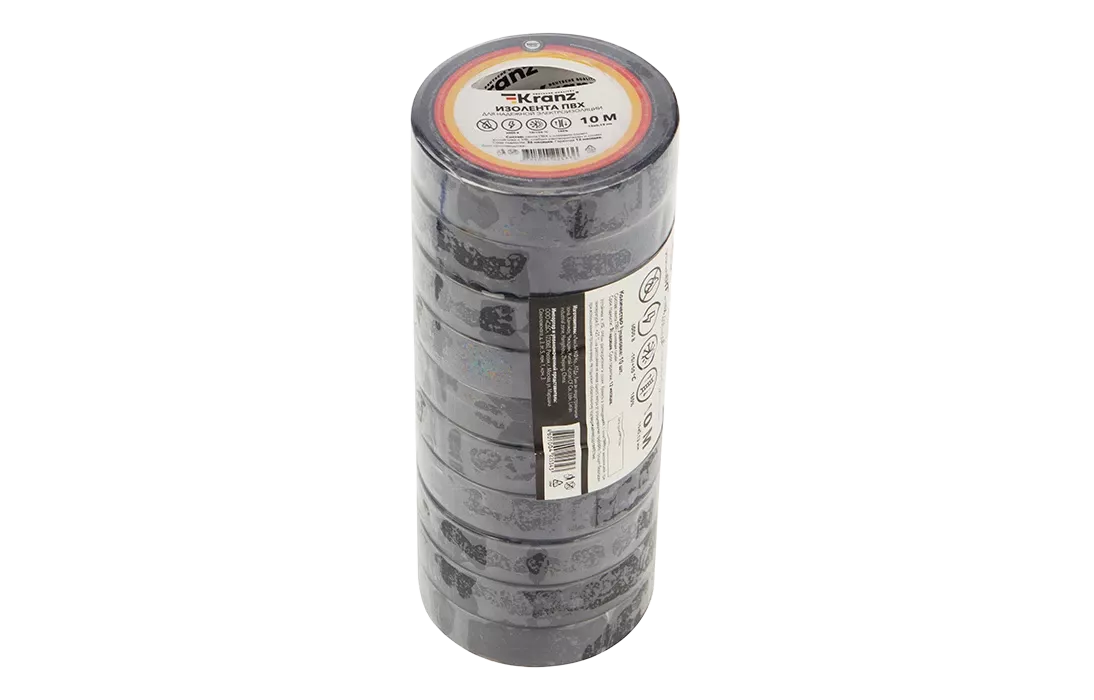 KR-09-2006 Изолента ПВХ KRANZ 15 мм х 10 м, черная, упаковка 10 роликов