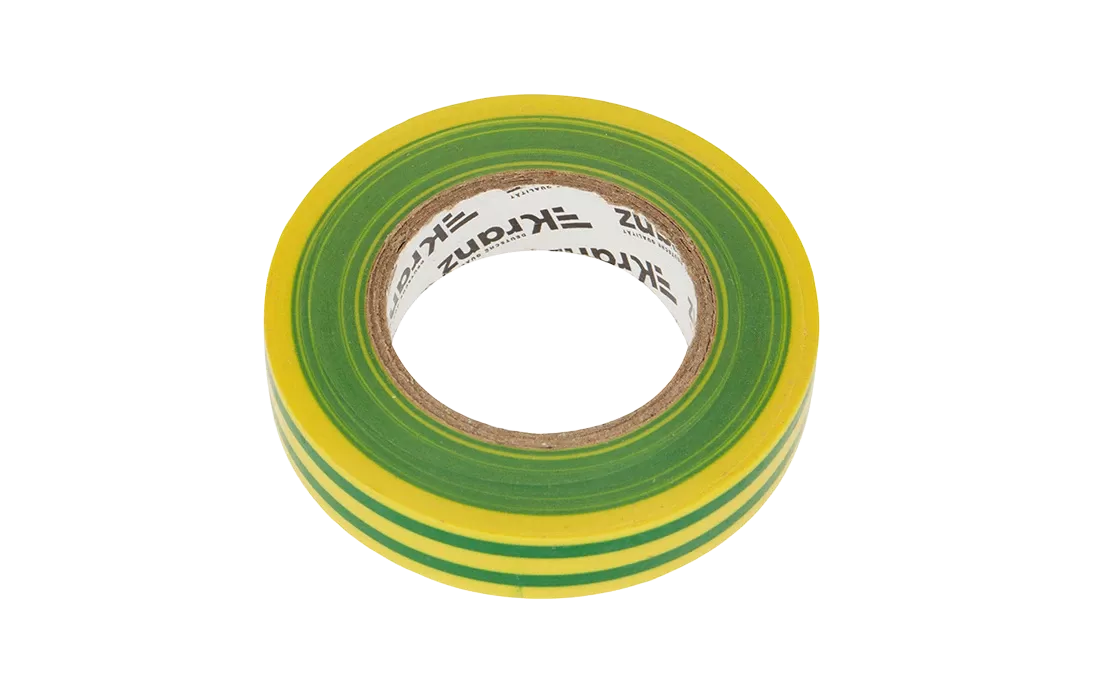 KR-09-2107 Изолента ПВХ KRANZ 15 мм х 25 м, желто-зеленая, упаковка 5 роликов