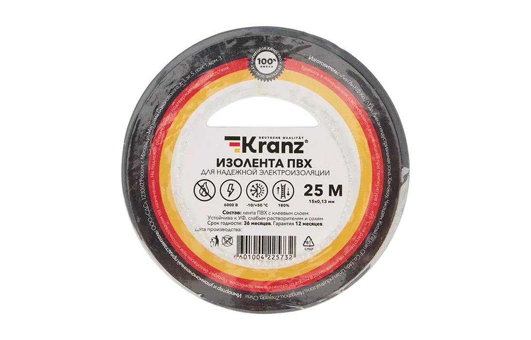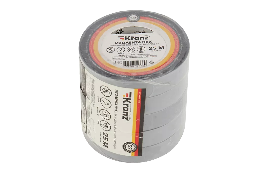 Изолента KRANZ предназначена для электрической изоляции, цветной маркировки, соединения, защиты от внешних факторов и герметизации кабелей, проводов и шнуров.