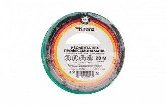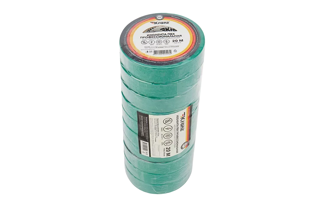 KR-09-2803 Изолента ПВХ KRANZ профессиональная, 0.18х19 мм, 20 м, зеленая упаковка 10 роликов