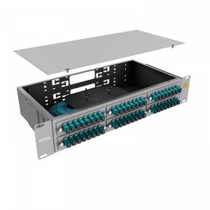 Кросс оптический распределительный стоечный NTSS серии Premium предназначен для оконцовки оптического кабеля и коммутации с внешними устройствами через оптические адаптеры. Кросс оптический 19" предназначен для установки в шкафы или стойки и имеет специальные кронштейны для крепления кросса в 19-ти дюймовые направляющие. Кронштейны могут быть установлены на двух разных уровнях, для возможности установки кросса как заподлицо с направляющими шкафа так и немного утопленным. Лицевая сторона оптического кросса NTSS-RFOB-PM изготавливается в двух видах конструктива - с отверстиями под адаптерные планки и со сплошной панелью. Тыльная стороны кросса имеет отверстия для ввода и крепления кабеля, для крепления центрального силового элемента. Для монтажа сплайс кассет в кроссе есть несъемные шпильки с гайками барашками. Кроссы выпускаются размерами от 1 до 4U и могут быть серого или черного цвета. Под заказ можно изготовить кроссы любого цвета.