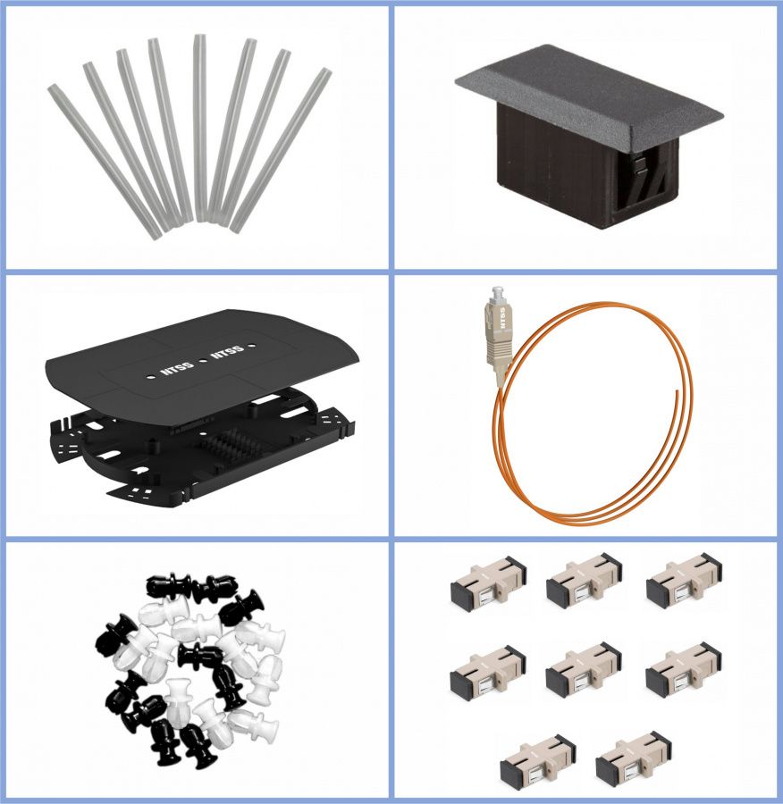 Кросс NTSS оптический 19'' укомплектованный 1U, 16 портов SC/UPC, 50/125 мкм (планки, сплайс-кассета, пигтейлы, КДЗС, адаптеры) серый RAL 7035