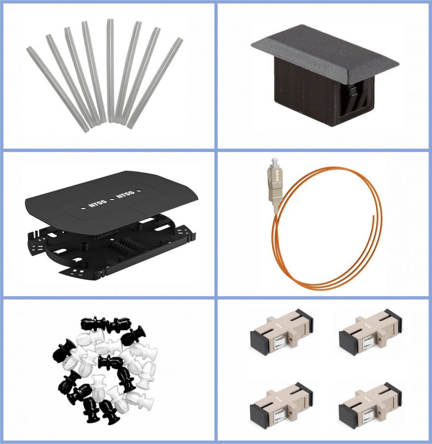 Кросс NTSS оптический 19'' укомплектованный 1U, 4 порта SC/UPC, 50/125 мкм (планки, сплайс-кассета, пигтейлы, КДЗС, адаптеры) черный RAL 9005
