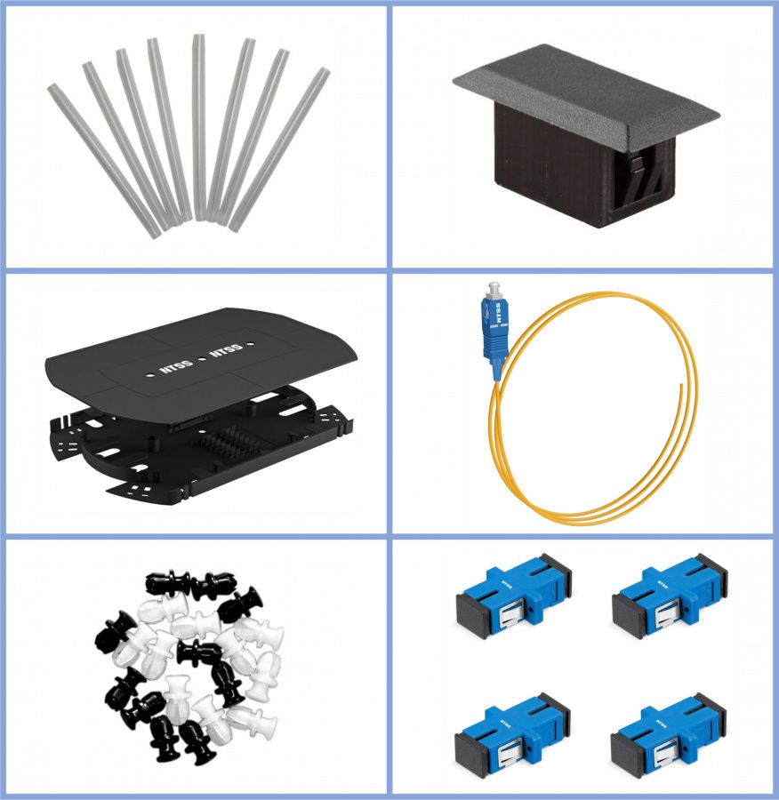 Кросс NTSS оптический 19" укомплектованный 1U, 4 порта SC/UPC, 9/125 мкм (планки, сплайс-кассета, пигтейлы, КДЗС, адаптеры) серый RAL 7035