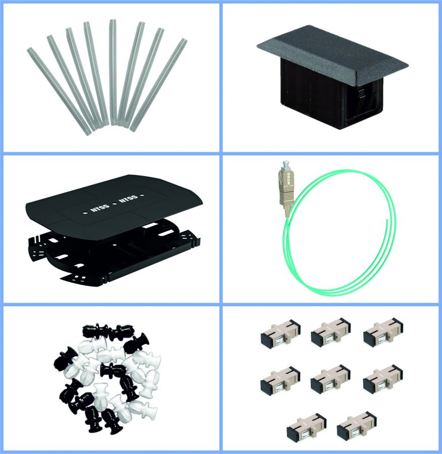 Кросс NTSS оптический 19'' укомплектованный 2U, 32 порта SC/UPC, 50/125 мкм ОМ3 (планки, сплайс-кассета, пигтейлы, КДЗС, адаптеры) серый RAL 7035
