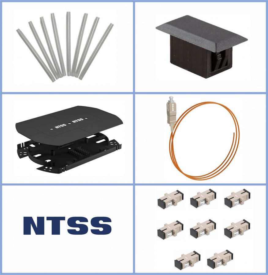 Кросс NTSS оптический 19'' укомплектованный 2U, 64 порта SC/UPC, 62.5/125 мкм (сплошная панель, сплайс-кассета 2шт, пигтейлы, КДЗС, адаптеры) черный RAL 9005