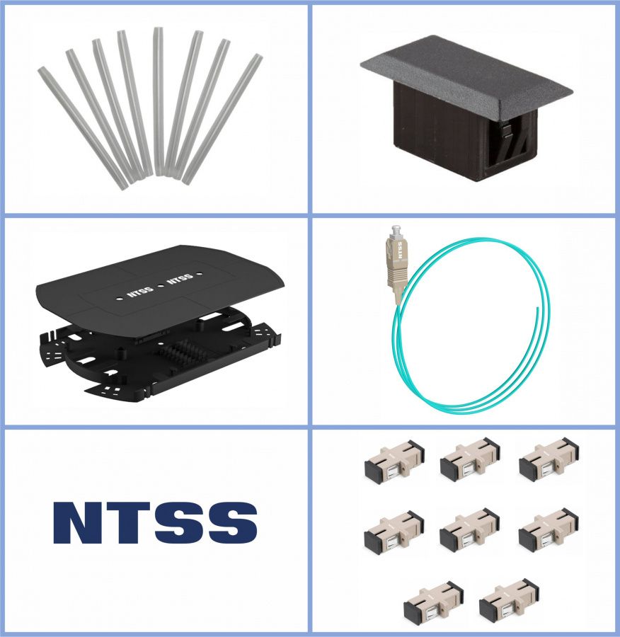 Кросс NTSS оптический 19'' укомплектованный 2U, 96 портов SC/UPC, 50/125 мкм ОМ3 (сплошная панель, сплайс-кассета 3шт, пигтейлы, КДЗС, адаптеры) черный RAL 9005