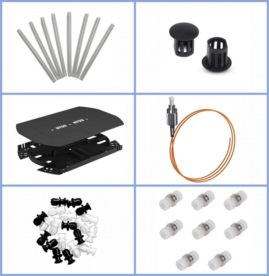 Кросс NTSS оптический 19'' укомплектованный 4U, 144 порта FC/UPC, 50/125 мкм (планки, сплайс-кассета 5шт, пигтейлы, КДЗС, адаптеры) черный RAL 9005