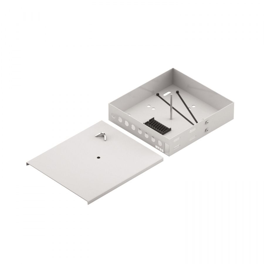 Кросс оптический настенный Микро NTSS-WFOBMk предназначен для оконцовки оптического кабеля и коммутации с внешними устройствами через оптические адаптеры. Кросс представляет собой компактное универсальное устройство, монтируемое на стену или любую иную плоскую поверхность. Изделие имеет жесткий металлический корпус, покрытый порошковой окраской. На боковой панели корпуса кросса выполнены отверстия для ввода и вывода кабелей или коммутационных шнуров. На нижней стороне кросса расположены отверстия под установку оптических адаптеров в соответствии с артикульным номером кросса. Внутри изделия предусмотрен ложемент, для фиксации термоусаживаемых гильз КДЗС, защищающих места сварки оптических волокон. В корпусе кросса предусмотрены места крепления внешней оболочки оптического кабеля, упрочняющих волокон, силового элемента вводимого кабеля. Кроссы выпускаются в сером и черном цвете. Под заказ возможно изготовление кроссов любого цвета.