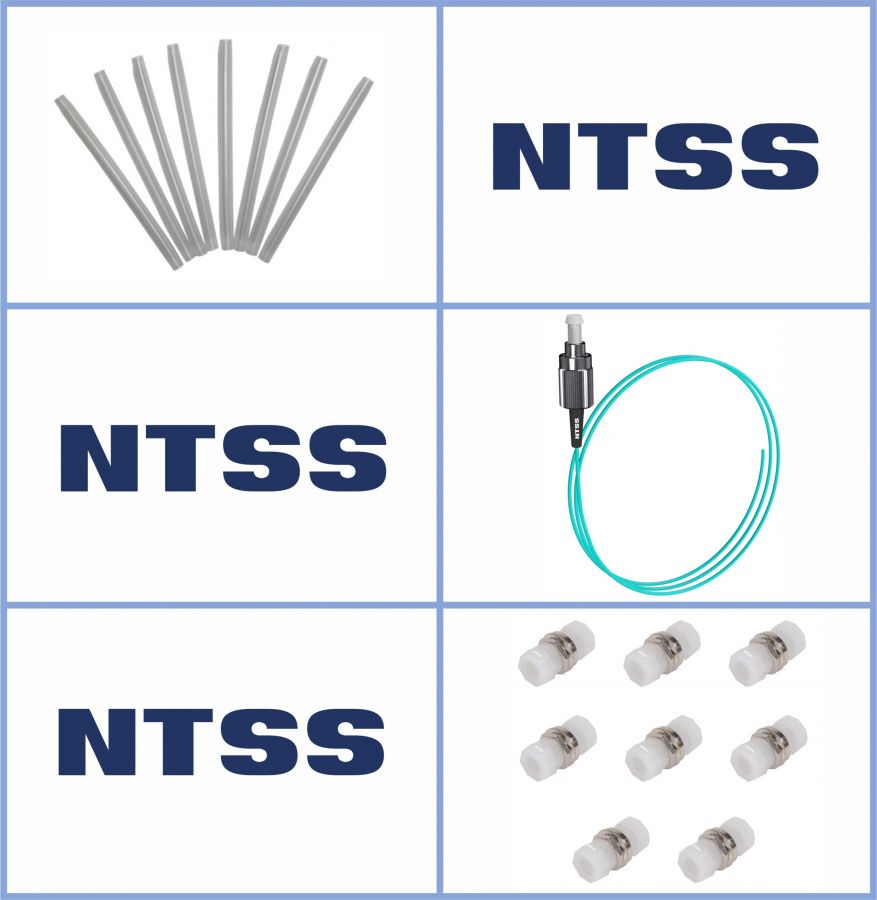 Кросс NTSS оптический настенный Мини, укомплектованный, 4 порта FC/UPC, 50/125 мкм ОМ3 (сплошная панель, ложемент, пигтейлы, КДЗС, адаптеры) серый RAL 7035