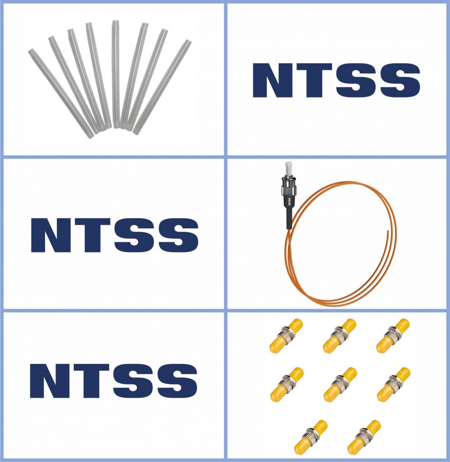 Кросс NTSS оптический настенный Мини, укомплектованный, 4 порта ST/UPC, 62.5/125 мкм (сплошная панель, ложемент, пигтейлы, КДЗС, адаптеры) серый RAL 7035