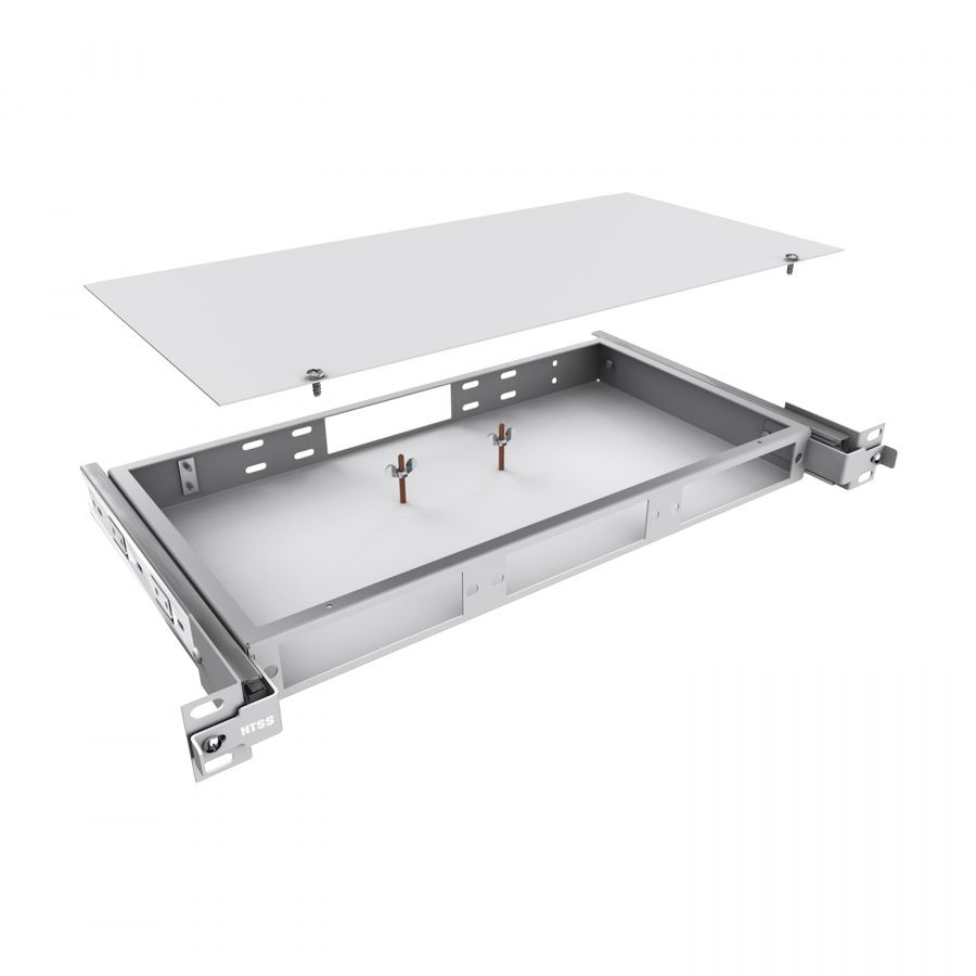 Кросс NTSS оптический выдвижной 19'' частично укомплектованный 1U, 8/16/24 портов FC/ST (планки FC/ST-3шт, планка-заглушка-2шт, сплайс-кассета-1шт) серый RAL 7035