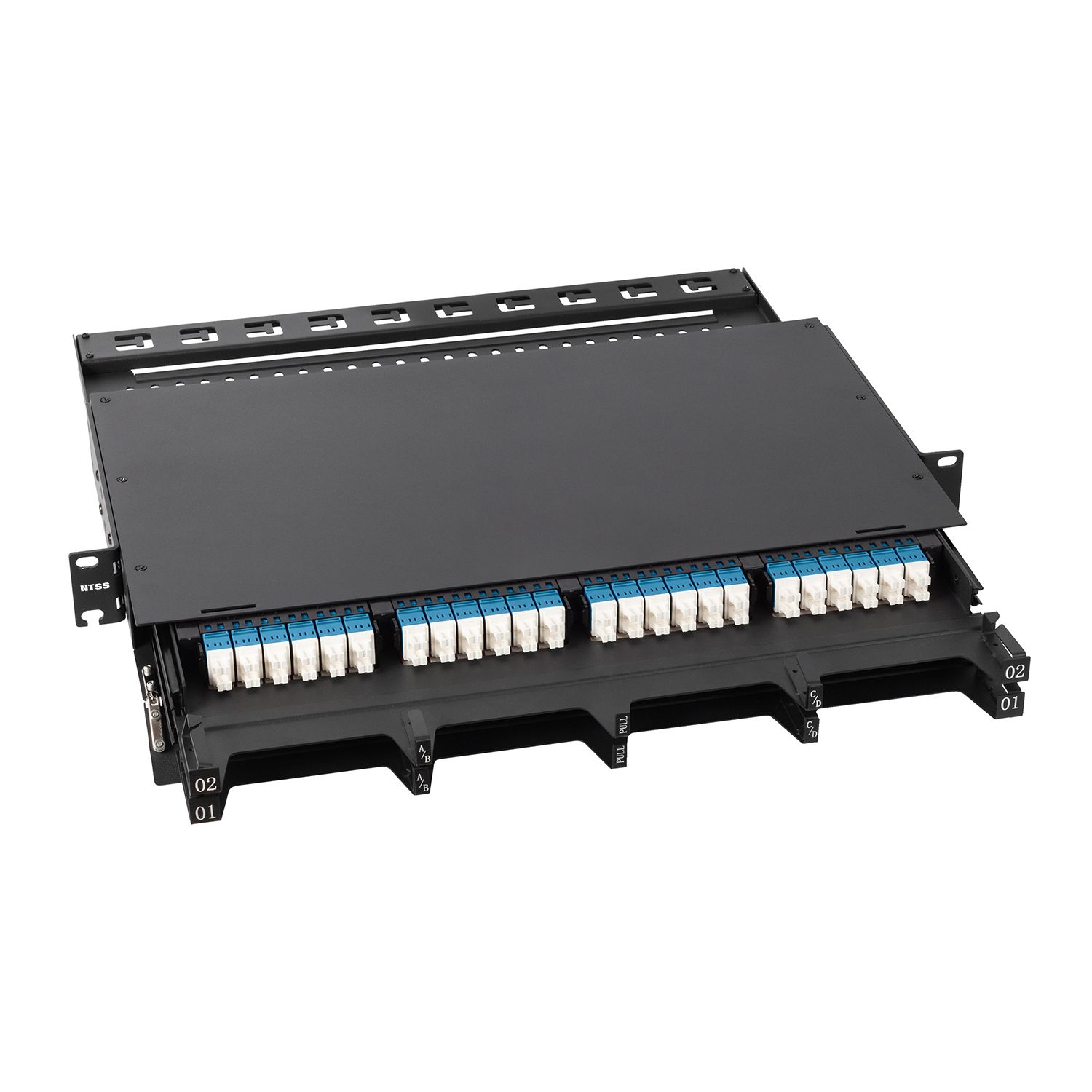 - Кассеты NTSS-CSM5-PM вставляются в кросс на выдвижных салазках и легко извлекаются с помощью механизма извлечения.