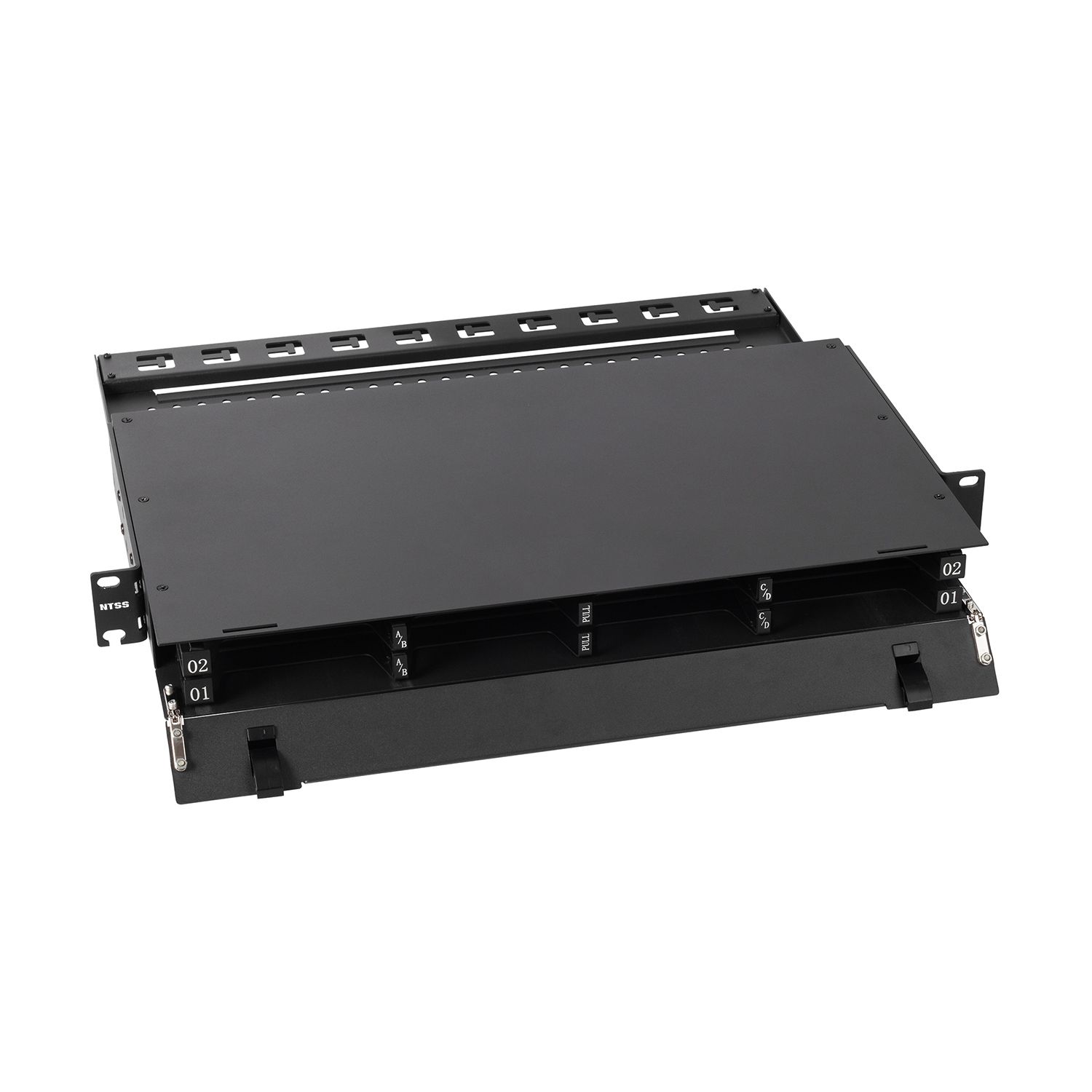 Кросс распределительный стоечный выдвижной 19” NTSS PREMIUM высотой 1U предназначен для установки до 8-ми кассет NTSS-CSM5-PM, для коммутации оптического кабеля с активным оборудованием или дальнейшего кроссирования с помощью коммутационных шнуров.