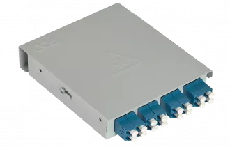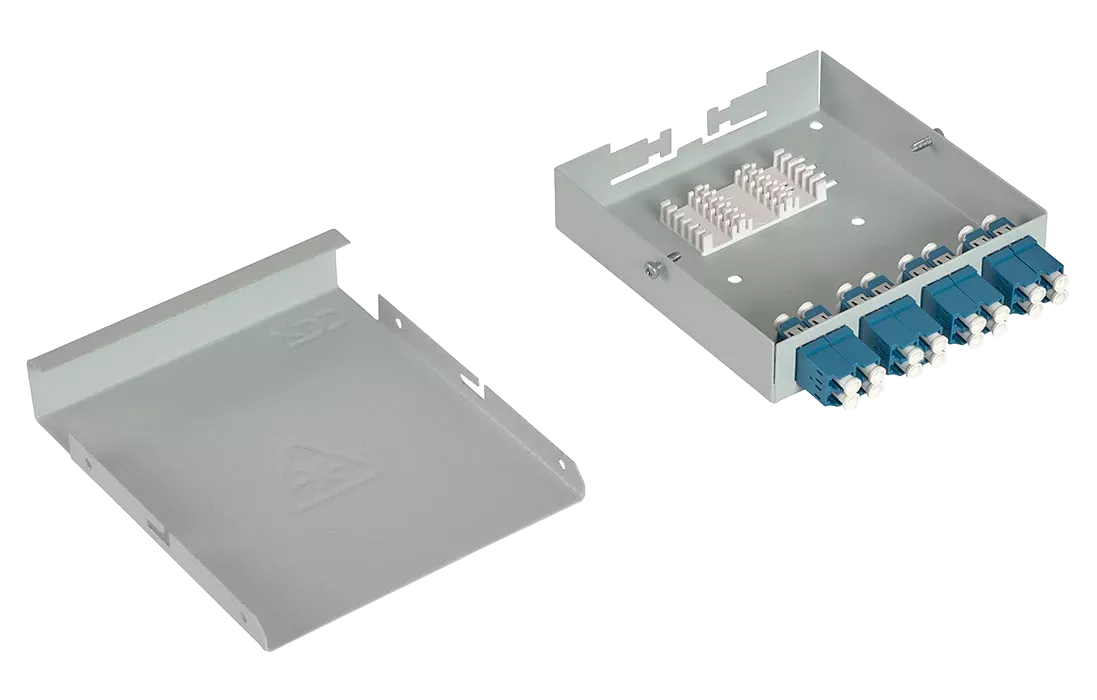 Оптические кабели разделываются и фиксируются в верхней части корпуса. Волокна свариваются с пигтейлами, КДЗС закрепляются в ложементе.