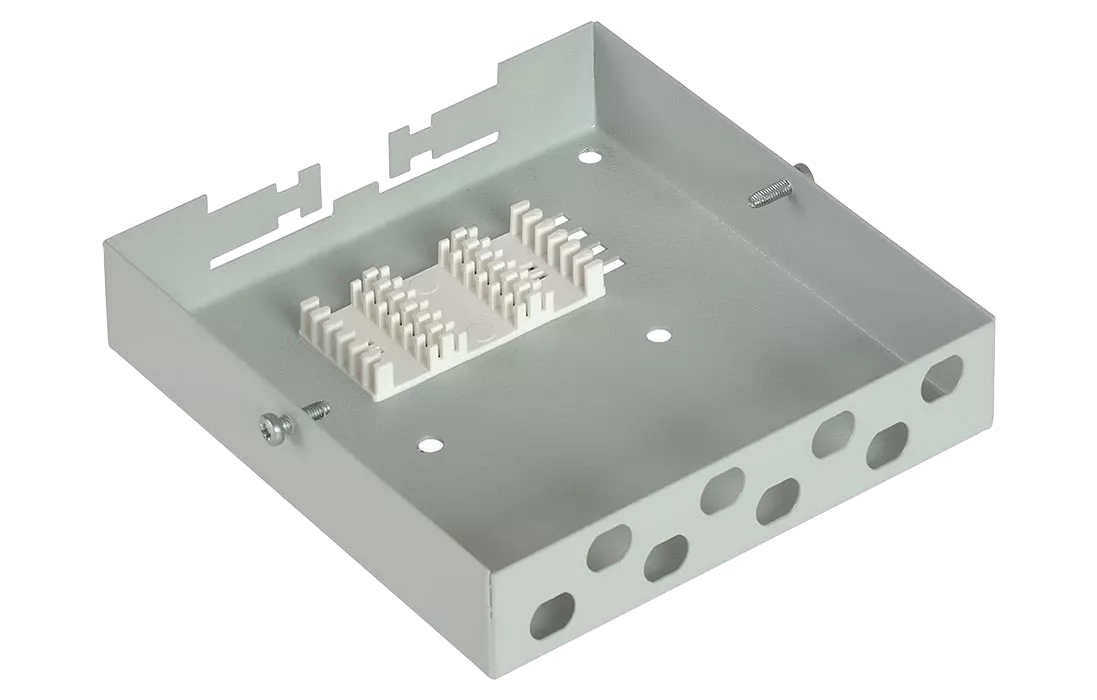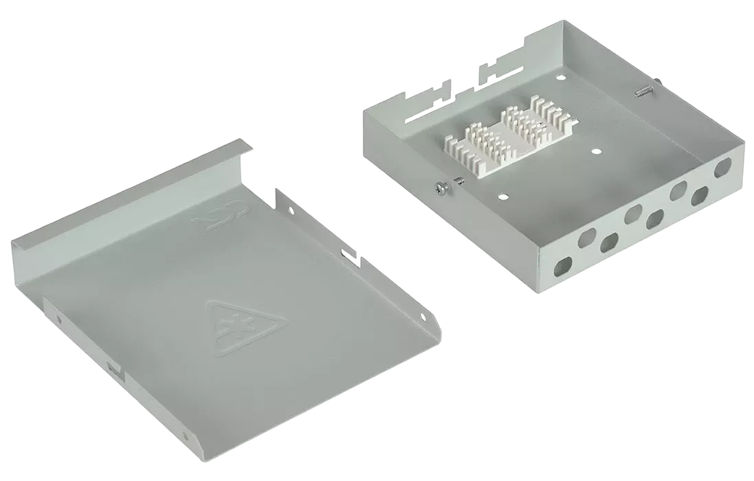Корпус кросса изготовлен из металла толщиной 1 мм и покрыт порошковой краской цвета RAL7035. Легкосъёмная крышка фиксируется двумя винтами с боков корпуса.