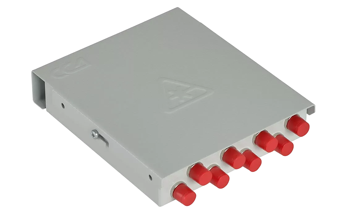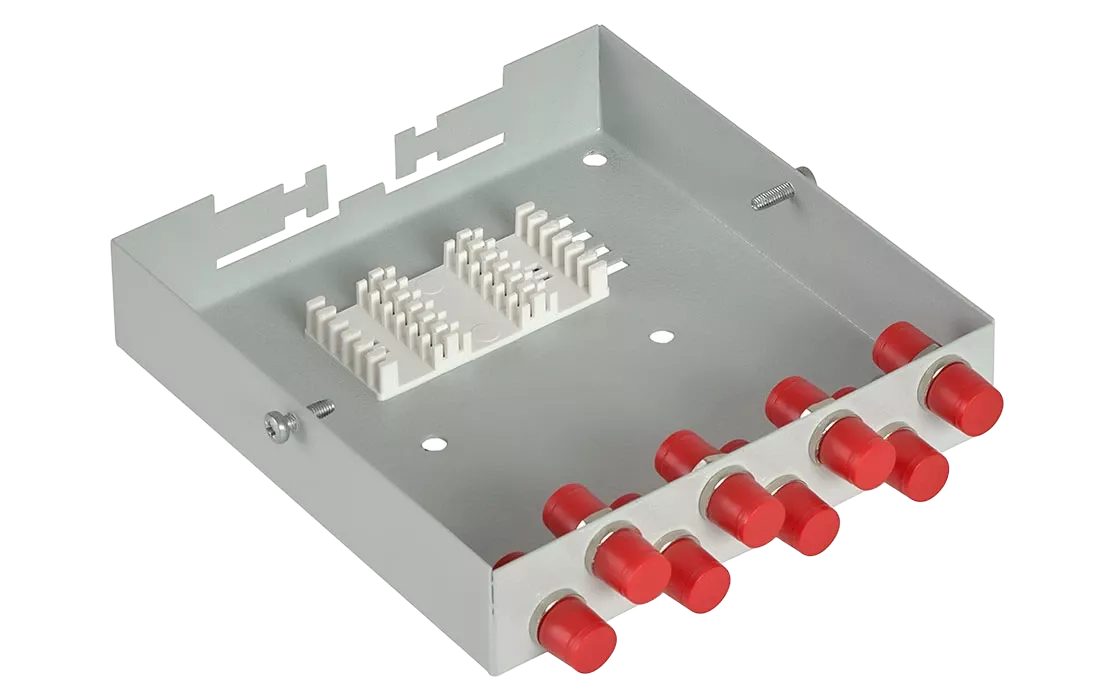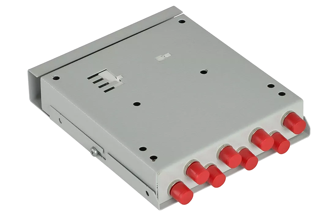 Оптические кабели разделываются и фиксируются в верхней части корпуса. Волокна свариваются с пигтейлами, КДЗС закрепляются в ложементе.