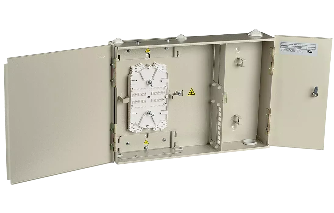 Оптические кабели разделываются и фиксируются в зоне ввода. Далее волокна в модулях поступают на кассеты для сварки с пигтейлами.