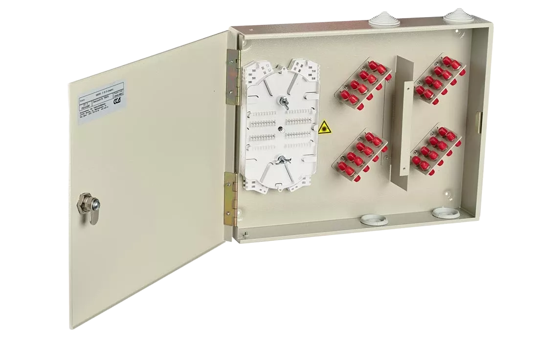 Оптические кабели разделываются и фиксируются в зоне ввода. Далее волокна в модулях поступают на кассеты для сварки с пигтейлами.