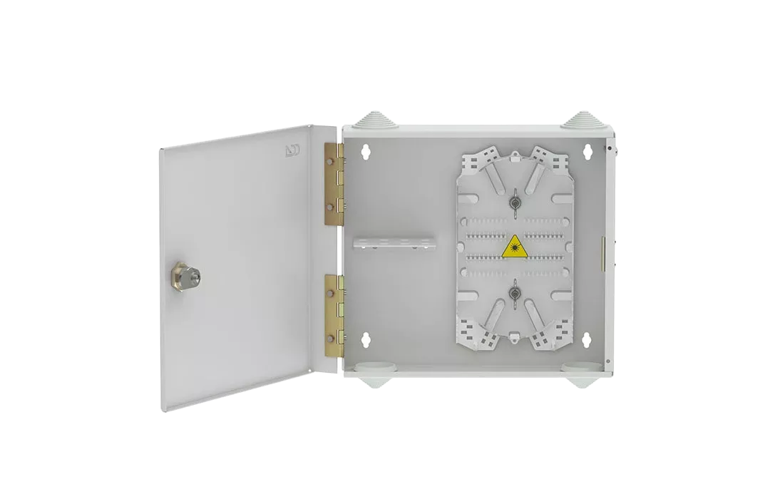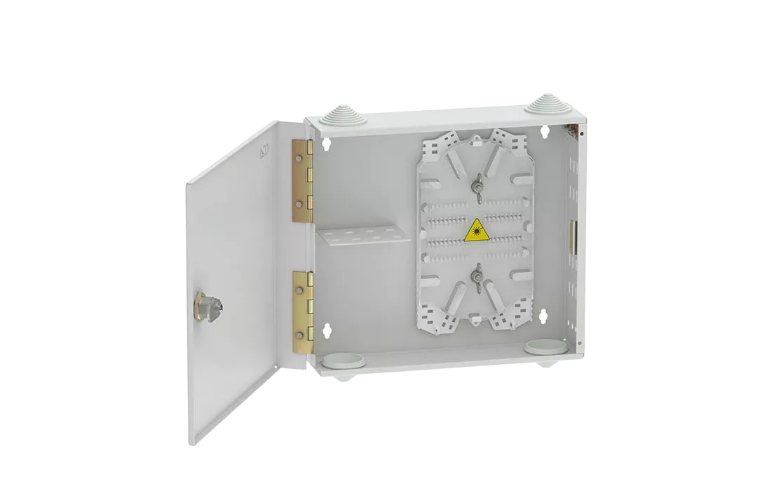 Оптические кабели разделываются и фиксируются в зоне ввода. Далее волокна в модулях поступают на кассеты для сварки с пигтейлами.